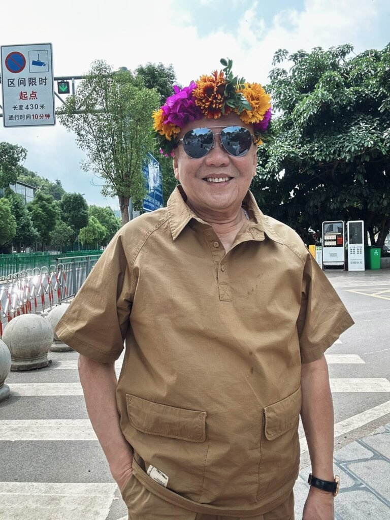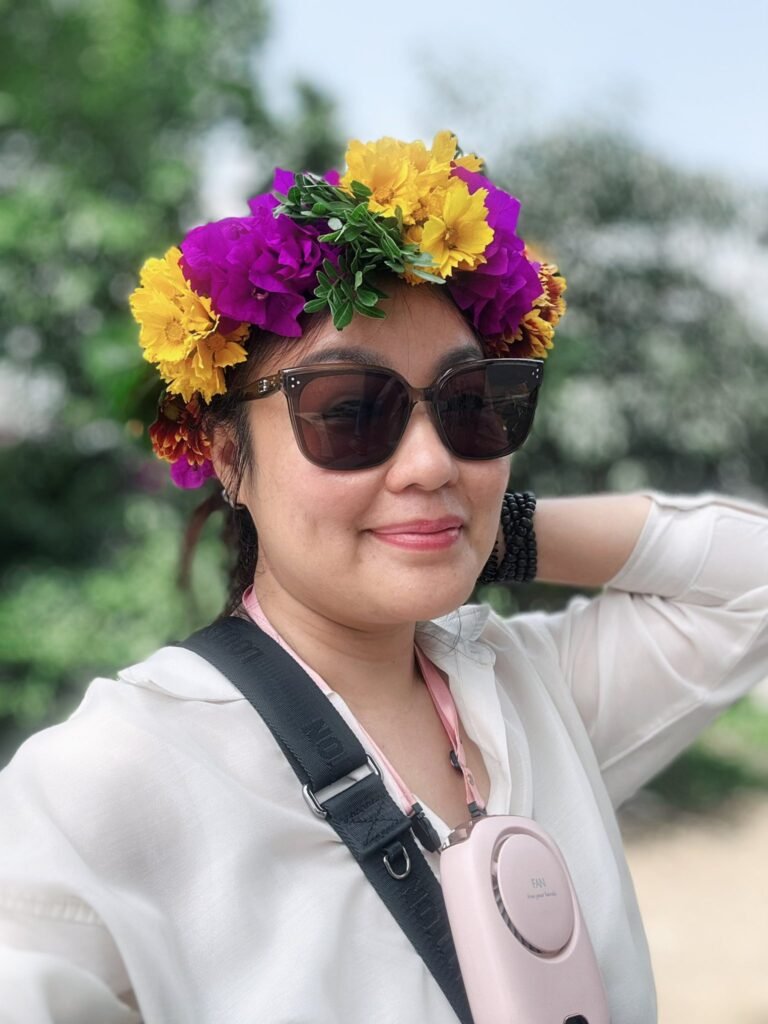 阳光有点猛,花环有点帅(别笑,是真的),笑容嘛,刚刚好,带点随性。